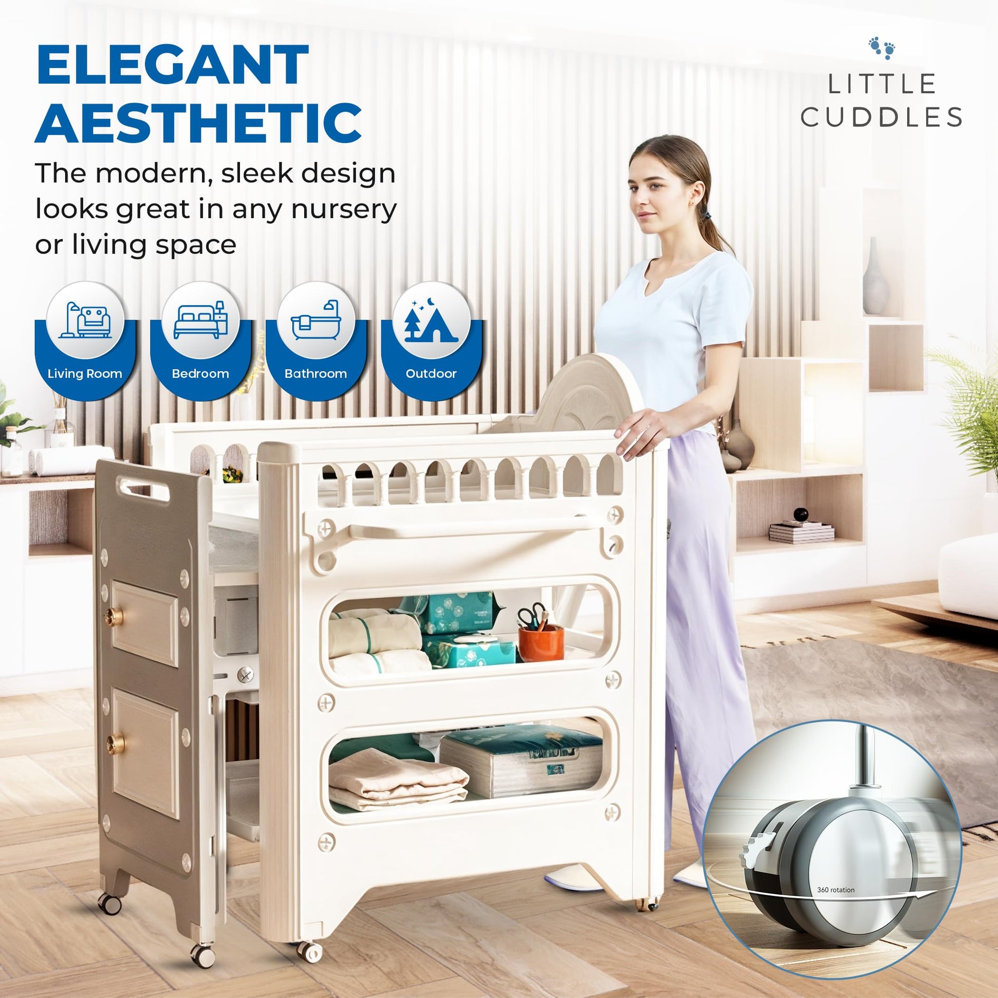 Little Cuddles 2-in-1 Baby Changing Table with Storage, Adjustable Height, Portable Diaper Station, Waterproof & Easy Assembly
